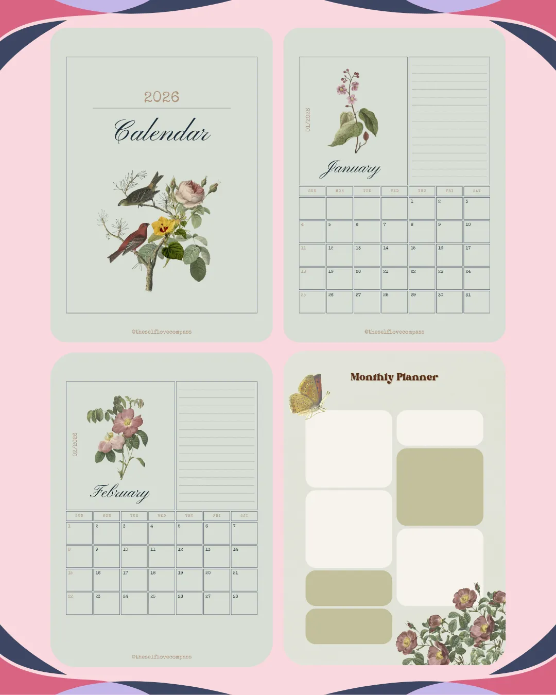 This 2026 calendar was created as a simple space where you can organize your month without pressure. Each page gives you room to write your plans, routines, or gentle intentions in a way that feels calm and manageable. It is meant to support you through the year, not overwhelm you, and to help you move at a pace that feels right for you.