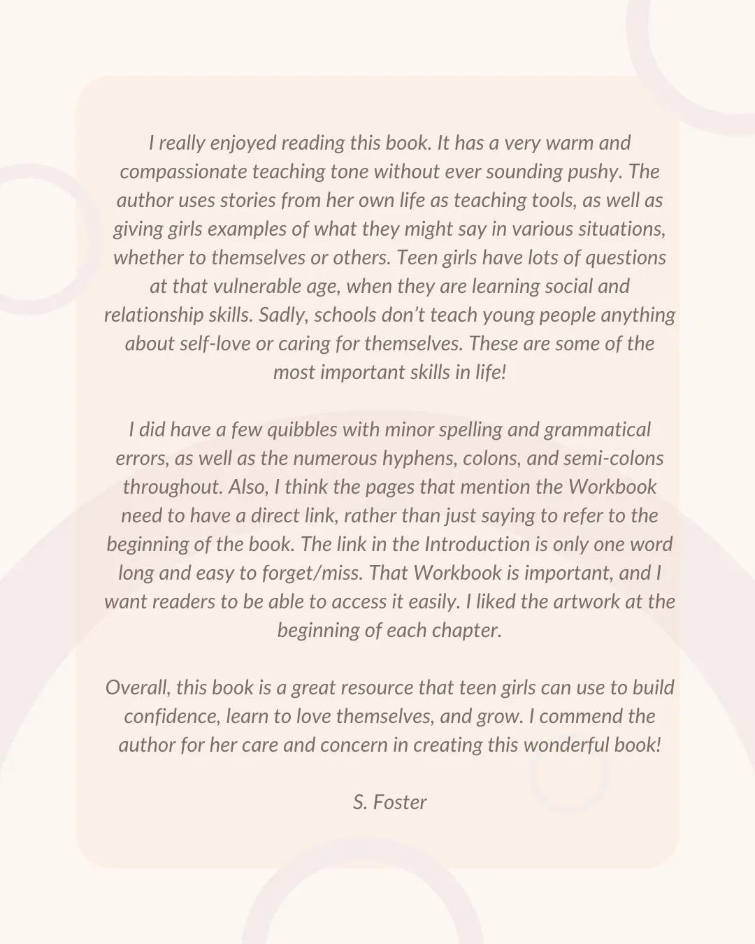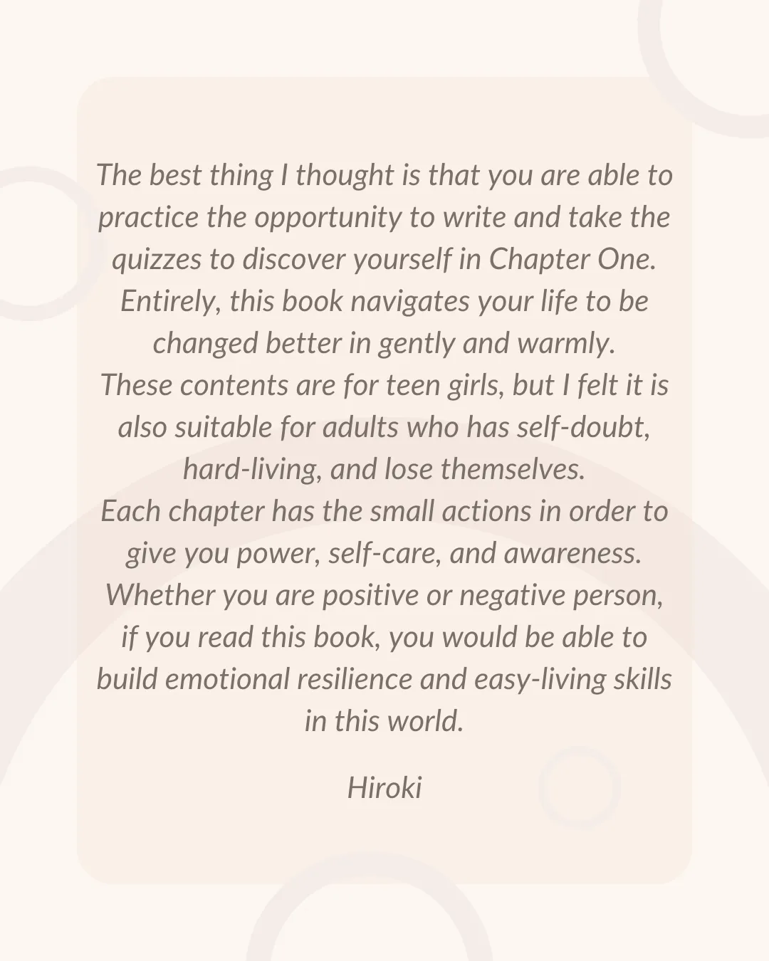 This isn’t just another book to read and put on a shelf. It’s a companion - a guide you can turn to when things feel overwhelming, a safe space for the questions you’re asking and the feelings you’re navigating. I wish I had something like this when I was a teen, a resource that validated what I was feeling, gave me tools to cope, and reminded me that I was enough even when it didn’t feel that way.